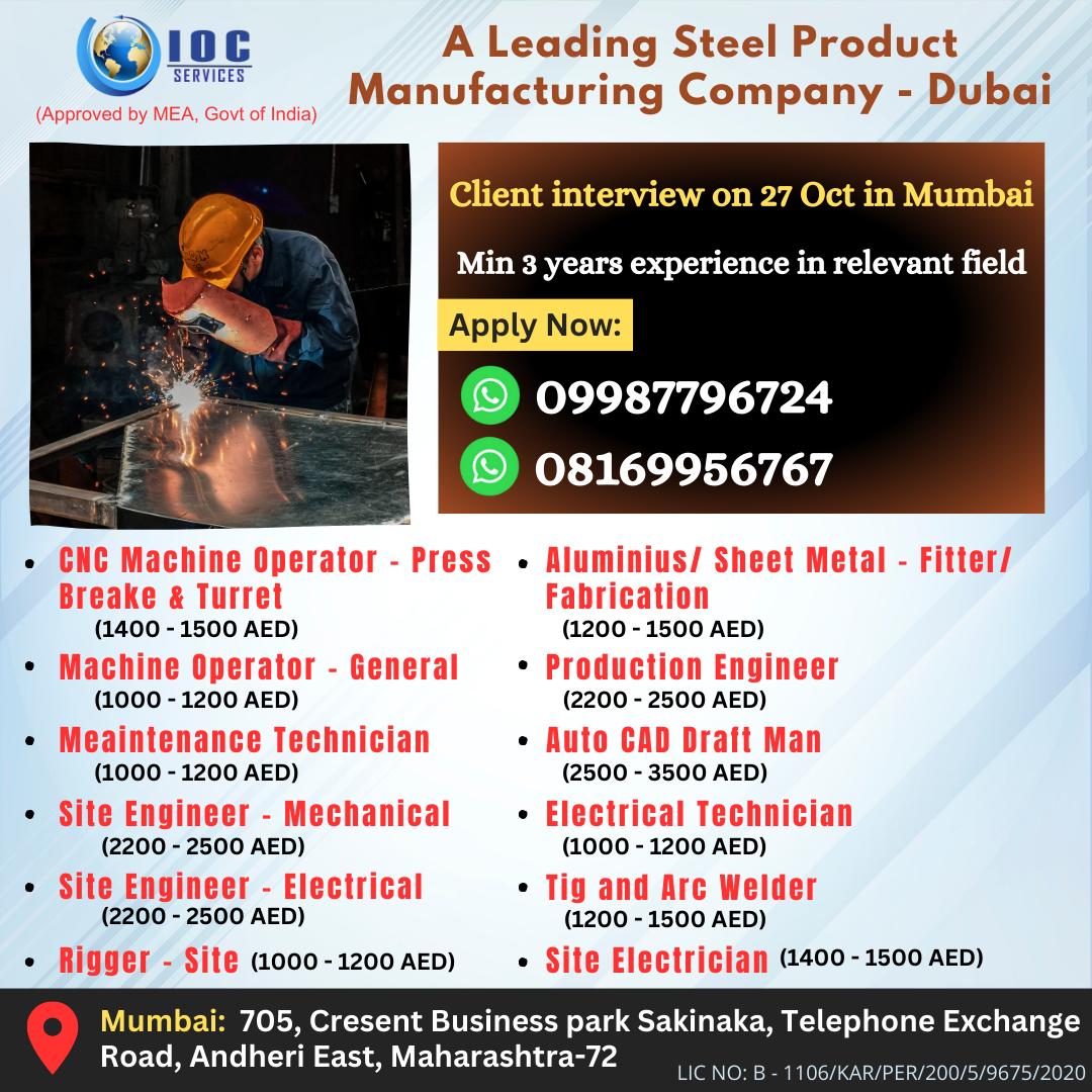 Latest Jobs Job Listing A LEADING COMPANY IN SAUDI ARABIA ππ¨ Exciting Job Opportunities for Auto Electricians and Auto Painters Online interviews are scheduled for 23rd O... Looking for a career change or growth in your current role? Unlock Your Potential with Exciting Career Opportunities at Kuwait's Premier Retail FMCG and Cold Storage Warehouse π Your Gateway to Hospitality Excellence in Kuwait π½οΈ Unleash Your Inner Hostess! An internationally acclaimed restaurant in Kuwait is preparing for online interviews, and... A LEADING STEEL MANUFACTURING COMPANY Exciting News! A leading Steel Industry in the UAE is gearing up for online interviews, and they're on the lookout fo... LADIES! Empower Your Journey in Hungary π Breaking Barriers! A leading company in Hungary, Europe, is actively seeking a talented and dedicated Female Driver t... HIRING NURSE FOR A LEADING HOSPITAL IN MAURITIUS β€οΈWeβre on the lookout for compassionate and skilled nurses to join the healthcare team. A SEMI GOVT COMPANY IN QATAR (Facility Management Division) Unlock Exciting Career Opportunities in Qatar! π Join a dynamic team in Qatar's prestigious Semi-Government Facil... A LEADING DELIVERY COMPANY IN KUWAIT Join a Leading Fast and Furious Delivery Team! πποΈ Are you a skilled driver with a GCC license for cars or an India... A LEADING VILLA CONSTRUCTION COMPANY IN MICRONESIA Are you a skilled Civil Multi Technician or a qualified Civil Site Engineer with a passion for crafting beautiful vil... A LEADING STEEL PRODUCT MANUFACTURING COMPANY – DUBAI Unleash your career potential in Dubai! π₯ Join the ranks of our leading steel manufacturing company as we open doors... « Previous Page 1 2 3 4 5 β¦ 9 Next Page »