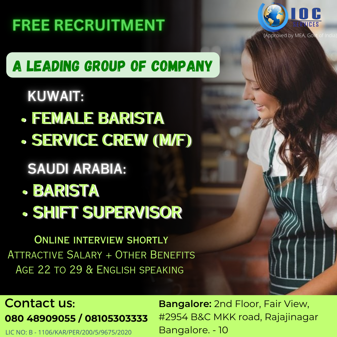 Latest Jobs Job Listing A LEADING GROUP OF COMPANY ( Kuwait & Saudi Arabia) Fuel Your Passion for Coffee! ☕ We're brewing up exciting opportunities for Baristas, Service Crew, and Shift Superv... A LEADING RESTAURANT IN SAUDI ARABIA 🚨 Job Alert! Your Dream Career Awaits 🌟 Don't miss out on this exciting opportunity. A LEADING HOUSE KEEPING COMPANY – KUWAIT Elevate Your Career in Kuwait! 🏨✨ We're in search of dedicated individuals for housekeeping. Apply today! A LEADING BAKERY – KUWAIT 🍰 Join the leading bakery in Kuwait on a delicious journey. We're hiring passionate bakers and assistant bakers. A SEMI GOVT COMPANY – QATAR Turn Up the Heat in Qatar! 🔥👨🍳 We're looking for a skilled people to join our kitchen brigade. SOUTH INDIAN COOK – QATAR Spice Up Your Career! 🌶️ We're on the hunt for a talented South Indian cook. If you've got a passion for authentic fl... FACILITY MANAGEMENT COMPANY – DUBAI Elevate Your Career in Facility Management, Dubai!!! 🌆✨ If you're a dedicated professional ready to ensure seamless... A LEADING FMCG COMPANY – QATAR If you have a passion for sales, a valid driver's license, and the drive to excel, this is your opportunity. Step int... MAINTENANCE COMPANY – DUBAI Unlock Your Next Career Chapter in Dubai! 🌆 We're on the lookout for talented individuals to join one of the leading... DENTAL CLINIC – MAURITIUS Smiles Begin Here! 😁 Join the prestigious dental clinic in Mauritius and be part of a team dedicated to delivering e... « Previous Page 1 …6 7 8 9 Next Page »